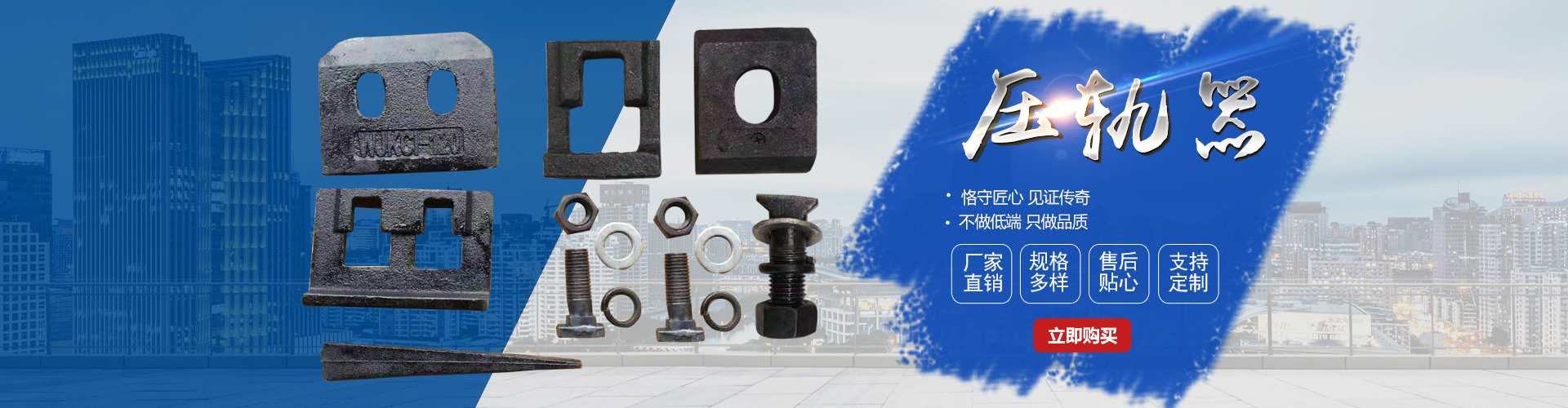 主要產品:鐵路配件、行車配件、工礦配件、魚尾板、道釘、壓軌器、軌道壓板、軌距拉桿、護軌扣板、T型螺栓、魚尾螺栓、彈條、軌距擋板